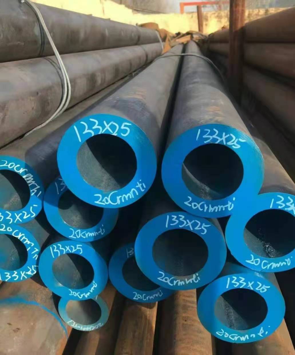 20CrMnTi无缝钢管是渗碳钢,渗碳钢通常为含碳量为0.17%-0.24%的低碳钢。汽车上多用其制造传动齿轮,是中淬透性渗碳钢中CrMnTi钢,其淬透性较高,在保证淬透情况下,具有较高的强度和韧性,特别是具有较高的低温冲击韧性,焊接性中等,正火后可切削性良好。